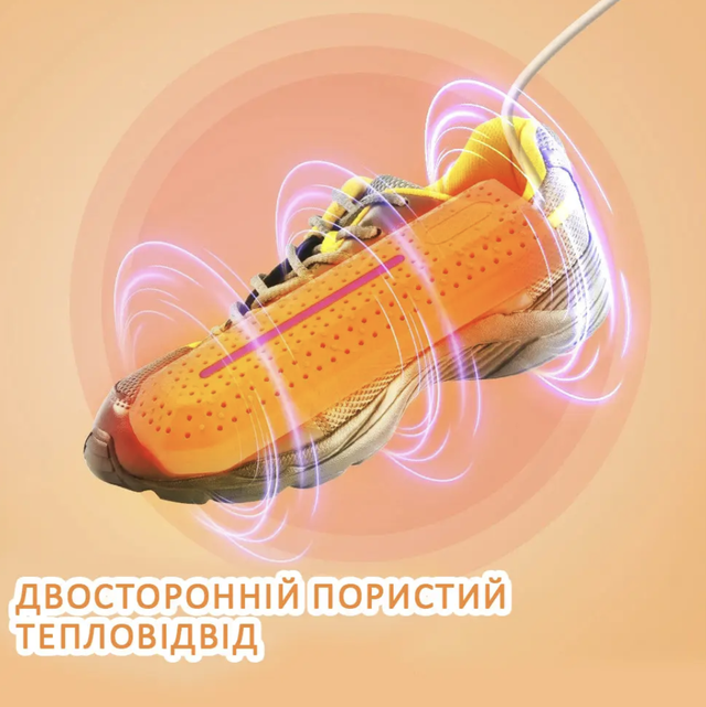 Завдяки високій температурі нагріву сушарка для взуття забезпечує швидке висихання взуття, а також його додаткову стерилізацію. Вона позбавляє шкідливих бактерій, які активно розмножуються у вологому середовищі та є причиною неприємних запахів. Просто висушіть своє спортивне взуття після пробіжки або спортзалу, і воно знову буде готове до використання. Сушить від поту близько 15 хв. і потрібно близько 2 годин, щоб висушити вологе взуття.